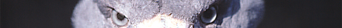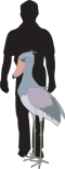 英名の「Whale-headed Stork」はずばり「クジラ頭」です。別称のShoebillは、「靴のようなクチバシ」ですが、これはやはり頭部のシルエットが靴の形に似ていることからそう呼ばれます。