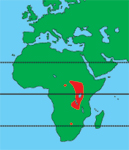 スーダン・ウガンダ・ブルンジ・タンザニア・マラウィ・ザンビア・コンゴ(旧ザイール)・中央アフリカ・ルワンダ・エチオピアの10ヵ国で生息が報告されています。