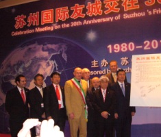 蘇州市は本市と中国の友好都市である呉江市を含む地区であることから、6月26日(土曜日)に開催された「蘇州地区友好都市提携30周年記念式典」への招待を受け、千葉市代表として大木市長公室長が出席したものです。