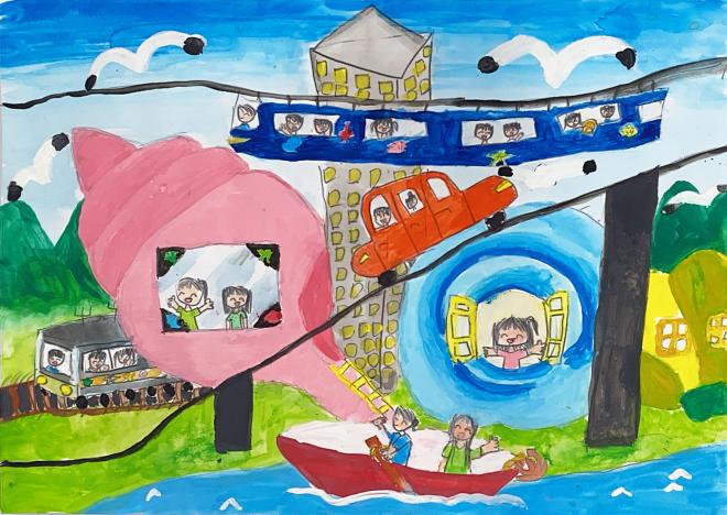 空飛ぶ大賀ハスや千葉市動物公園のレッサーパンダやライオンの車、海の中を簡単に移動できるバブル、海沿いの施設を観戦することができる空飛ぶふうせんなどの新しい乗り物などで、千葉市のみりょくを引き出したいです。