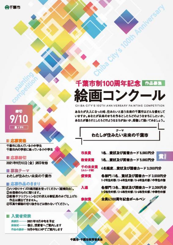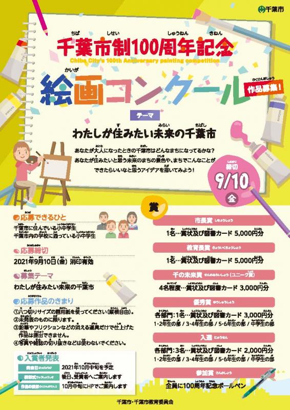 市制100周年を記念して、千葉市の未来について子どもたちに考えてもらうため、市内小中学生を対象に絵画コンクールを実施します。