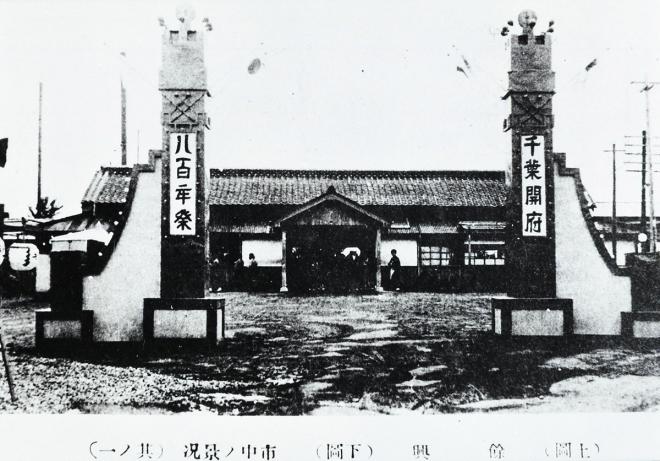 千葉市制施行後の1926年に、千葉氏400年の恩恵を踏まえ、市民とともに千葉氏の慰霊を慰めるとともに市の紹介と将来の発展に資するため、記念祭にあわせて様々な催事を実施する千葉開府八百年祭をはじめて開催しました。この八百年祭は6日間も続き、全市をあげての大祝典となったそうです。