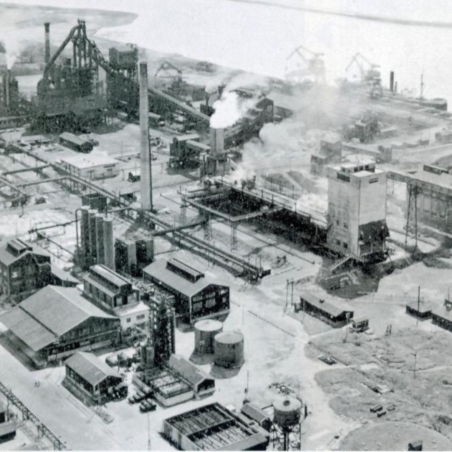戦後、千葉市は復興への足がかりを海岸埋立による工場誘致にも求めました。特に、1953(昭和28)年の川崎製鉄千葉製鉄所(現JFEスチール(株)東日本製鉄所) 操業と、翌年に千葉港が関税法上の開港をしたことにより、消費都市から生産都市へ転換を図りました。