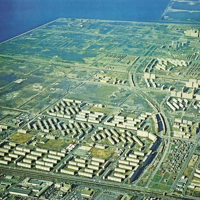 1973年完成、約2万3,000戸が建設され、豊かな干潟は住宅地に生まれ変わった。