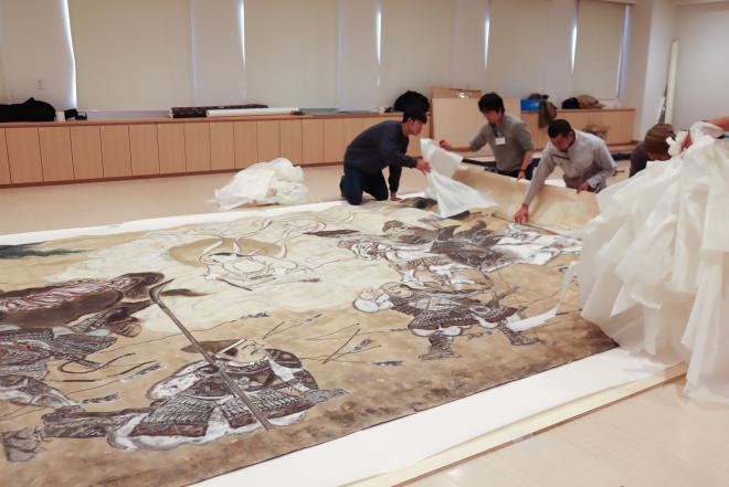 田岡春径「妙見尊出現の図」大壁画修復作業を実施しています。