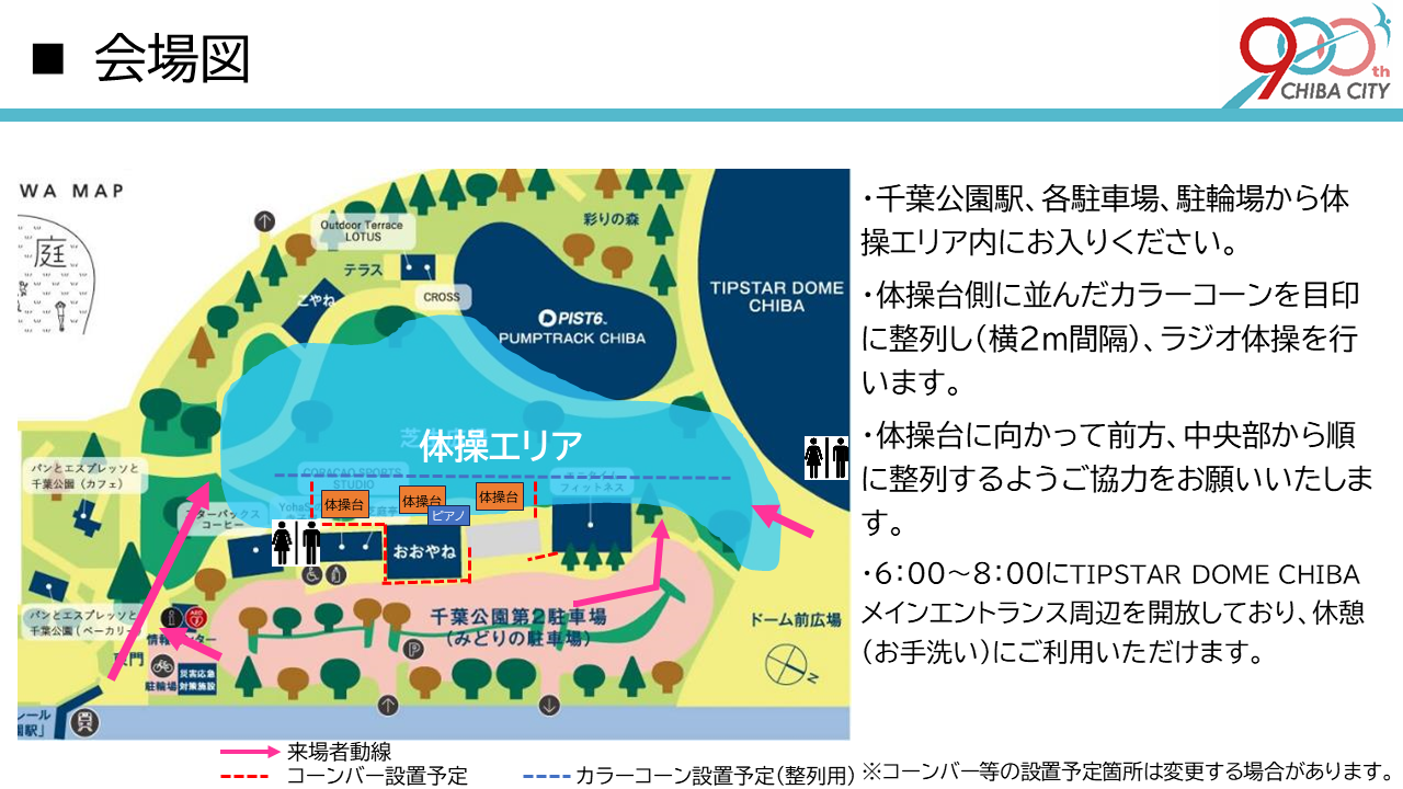※同日6時30分からラジオ体操第1、第2を会場から全国および海外に放送予定です。