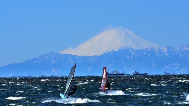 幕張の浜といなげの浜に挟まれた人工海浜「検見川の浜」では、1年を通してヨットやウインドサーフィンなどのマリンスポーツが楽しめます。
