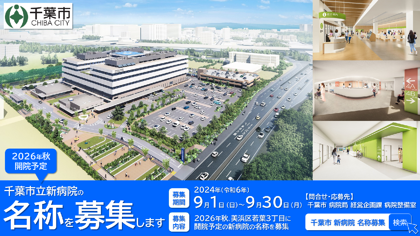 2026年(令和8年)秋に開院を予定している千葉市立新病院について、名称を募集しますので、お知らせします。