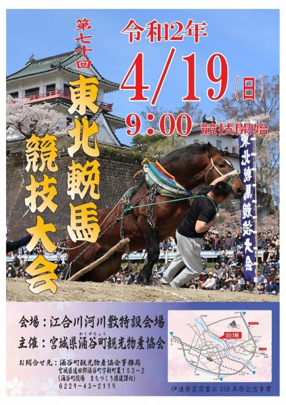 樹齢120年の枝垂れ桜の開花に続いて、4月中旬には園内の桜が咲きそろいます。また、期間中にはライトアップされた桜並木の夜桜見物ができるほか、4月19日(日曜日)には桜まつりのメインイベントであり、伊達安芸宗重公350年祭の記念事業でもある第70回東北輓馬競技大会が開催されます。