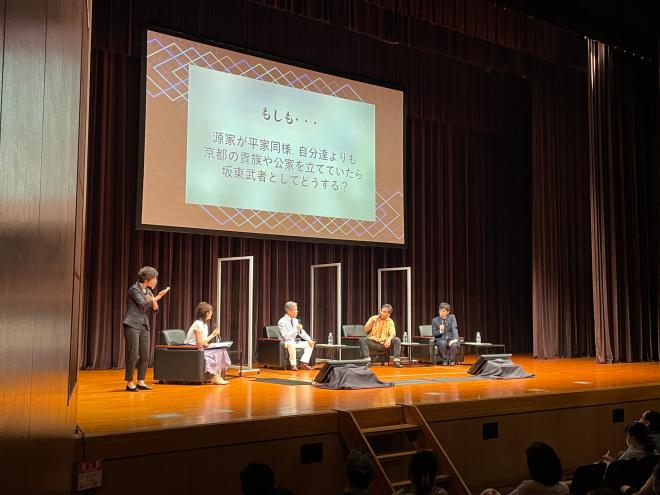 第一部では、深井龍之介さんが当時の歴史や武家の成り立ちなどを、晴野未子さんとともに解説。後半では岡本さんが登場し、ドラマでは語られない千葉常胤の人物像などに終始興味深く聞き入っていました。