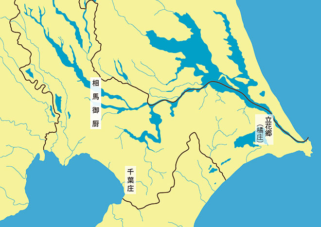 千葉常胤は源平合戦・奥州合戦での功績により、朝廷に没収された相馬御厨と立花郷(橘庄)を取り戻した他、下総・上総の2か国をはじめ、東北地方、九州地方などに全国で20数か所といわれる広大な所領を得ました。その結果、千葉氏は東国の一豪族から、鎌倉幕府の中でも屈指の有力御家人に成長しました。常胤の所領は「千葉六党」と称された6人の息子が分割して受け継ぎ、一族は全国に広がっていきました。