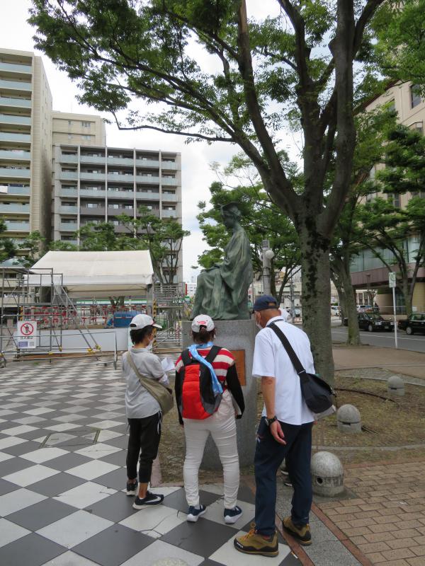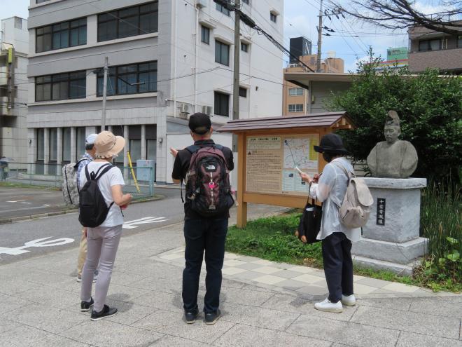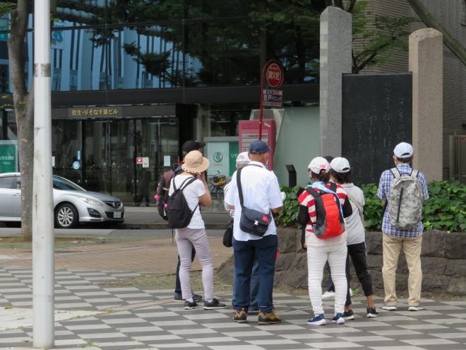 今回のテーマは、「大賀ハス&中心市街地歴史巡りウォーキング」。市観光協会のちばシティガイドの説明を聞きながら、中央区の隠れた魅力や歴史を巡りました。
