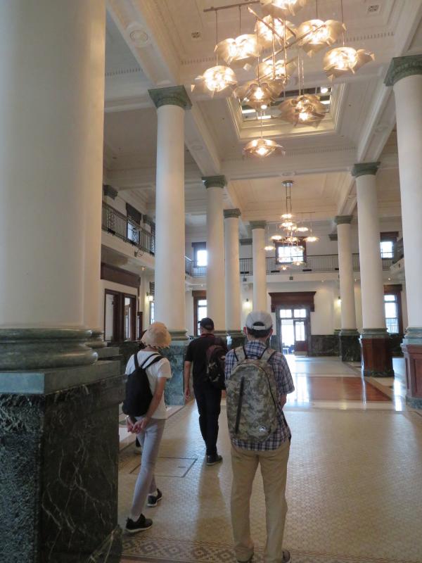 千葉市美術館 美術館の建物は、市内で現存する数少ない歴史的建造物の一つで、公共建築百選(1998)にも選ばれています。「さや堂ホール」は、10本の円柱が並ぶネオ・ルネッサンス様式の空間で、テレビドラマの撮影やコンサート等にも使用されています。ホールは展覧会などで使用している時は、自由に見学できないのですが、今回は運よく見学することができました。
