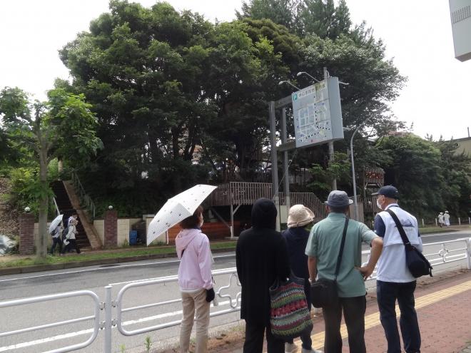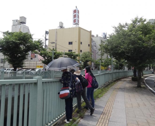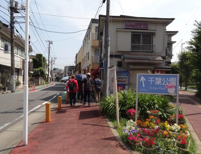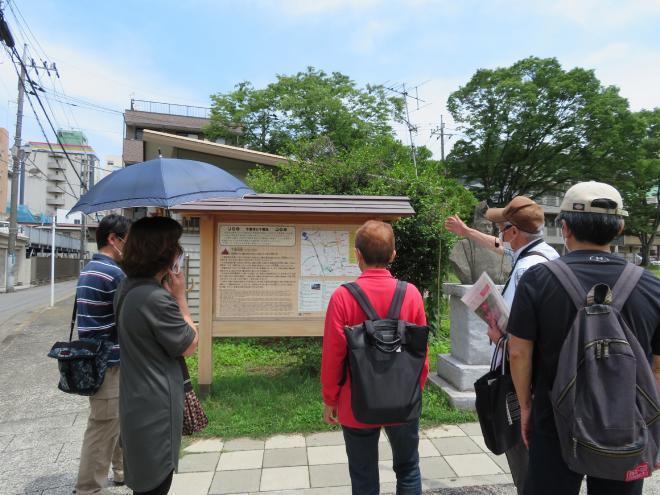 千葉駅方面~栄町方面 駅前地下道~新葭川橋~栄町駅~通町公園を経由します。昔の街並みを思い出し懐かしむ方や、葭川の鯉の多さに驚く方もいらっしゃいました。通町公園では、「千葉氏」の歴史について説明を受けました。
