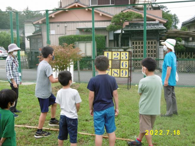 今年度初めて実施した夏休みラジオ体操後のストラックアウトの様子