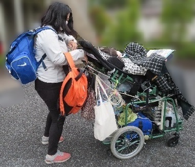 今回の訓練に持ち出したのは、人工呼吸器着用の方の必要物品半日分のみ。それ以上の日用品や食事、介助者の方の必要物品等を考えると、介助者一人での徒歩での避難はかなり難しいということが分かりました。今後は近隣の住民の方や地域の民生委員等に協力を呼びかけていくことに。本日の経験を反映させ、第2回目の個別避難訓練を行うことを決定しました。