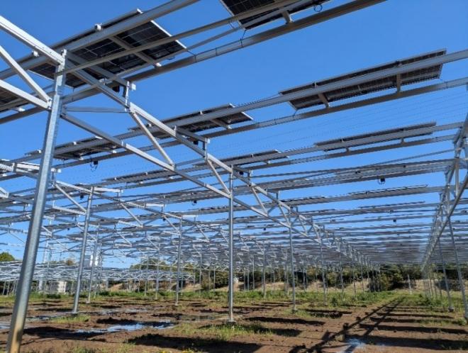 農地の上部空間に太陽光パネルを設置し、農業を継続しながら発電を行うことにより、エネルギーの地産地消と食料生産の両立を目指す取り組みです。