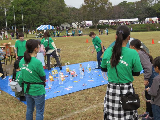 こども広場では、昔あそびやグラウンドゴルフ体験のほか