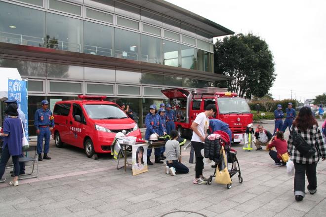 花島公園センター前では、花見川消防署による消防車両の展示、千葉北警察署による移動交番や白バイの展示等が行われました。