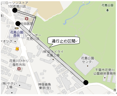 ※花島公園前道路は9時から16時まで通行止めとなります。