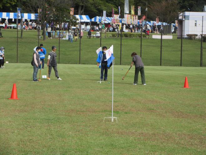 こども広場では、ミニゲームやグラウンドゴルフ体験が行われました。