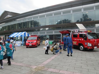 花島公園センター前では、花見川消防署による消防車両の展示、千葉北警察署による移動交番や白バイの展示やパラスポーツ(ボッチャ)体験会が行われ、子供たちに大人気でした☆