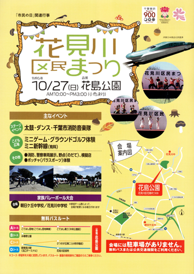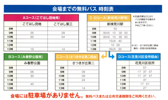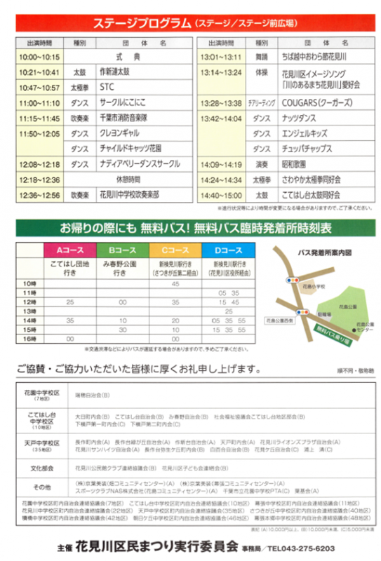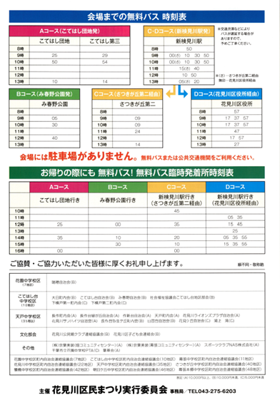 ※会場発の無料バスの時刻表は、当日花見川区民まつり会場で配布する「プログラム」に記載されています。