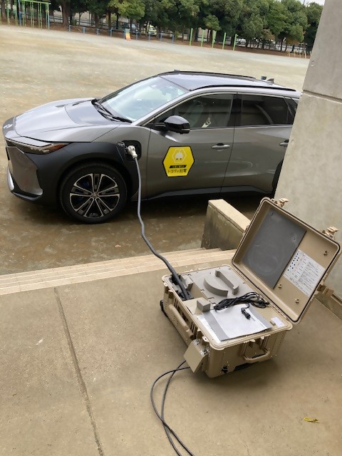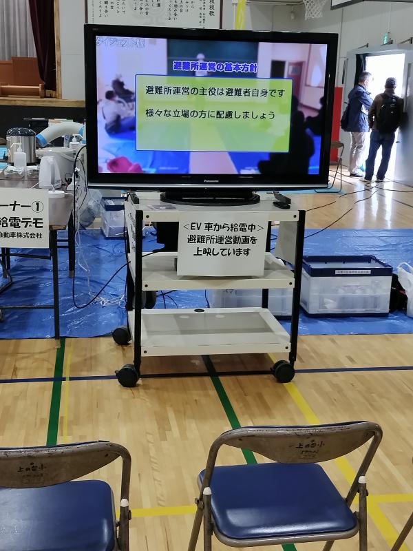 電気自動車からの給電によるDVDの上映