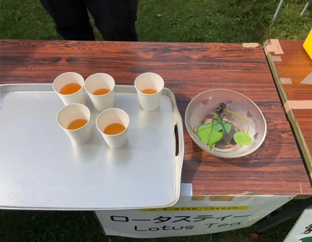 会場では、オカリナの演奏会やハスの葉を利用したハスシャワー、ハスのお茶が用意されるなど、ハスの鑑賞に加え随所に趣向が凝らされておりました。
