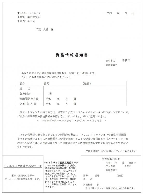 資格情報のお知らせを普通郵便でお送りしました。