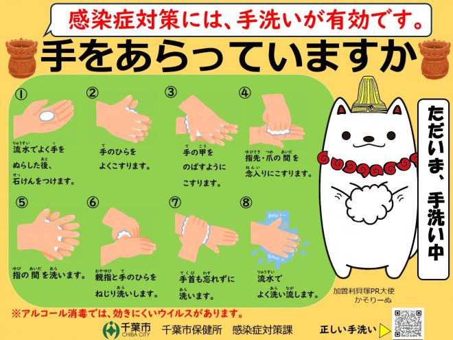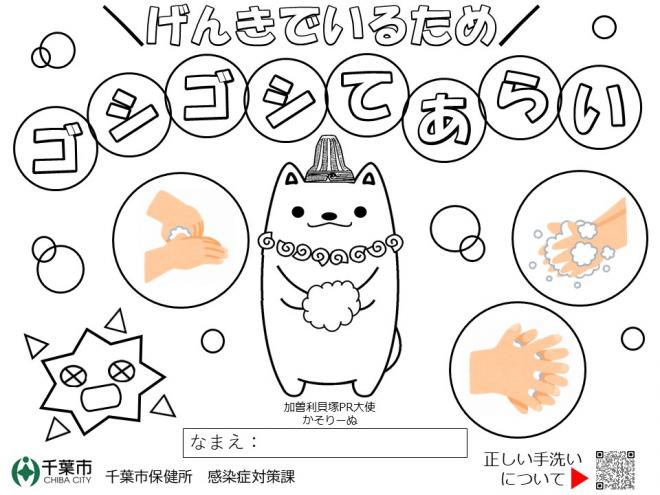 かそりーぬ・チーバくんと正しい手の洗い方を学べます。