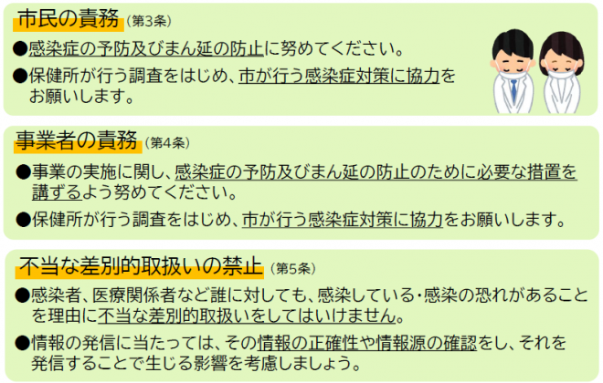 市民・事業者の皆さまと一致団結して新型コロナウイルス感染症のまん延の防止に取り組むため、「新型コロナウイルス感染症対策条例」を定めました。