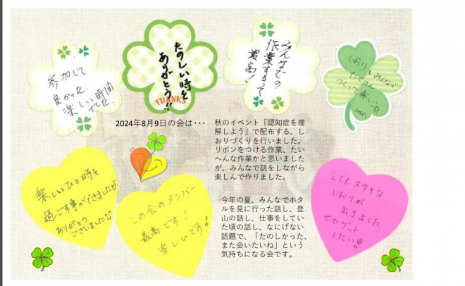 今回も新しい方(ご家族)が参加されました。認知症の方がご自身のことをお話しされている姿を見て、驚いた様子でした。