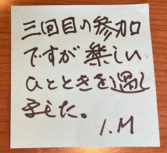 ・「いつもの人、はじめての人、今日もいい時間をありがとうございました。」
