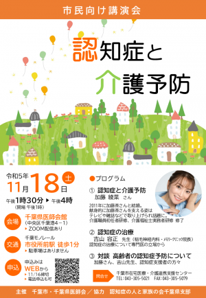 〇加藤綾菜さんの講演では、夫である加藤茶さんの病気をきっかけに、長く健康で過ごしてもらえるよう生活習慣や食事の見直しを思い立ち、夫婦2人三脚で108歳の茶寿を目標に取り組んでいる工夫や注意点をお話しいただきました。加藤茶さんの日常やコロナ禍で本当に大変だったことなど、貴重なお話も伺うことができました。 〇吉山先生からは、認知症の治療に関することや、注目されている新薬について具体的に解説いただきました。専門医の先生から直接お話を伺えたことで、認知症への正しい理解が深まったと思います。 〇対談では、加藤さん、吉山先生の他、千葉県医師会の和田先生、認知症の人と家族の会千葉県支部合江代表、千葉県介護支援専門員協議会藤井副理事長、訪問看護ステーションかがやき尾崎所長が登壇し、家庭での介護予防の取り組みや認知症支援について意見交換されました。 |