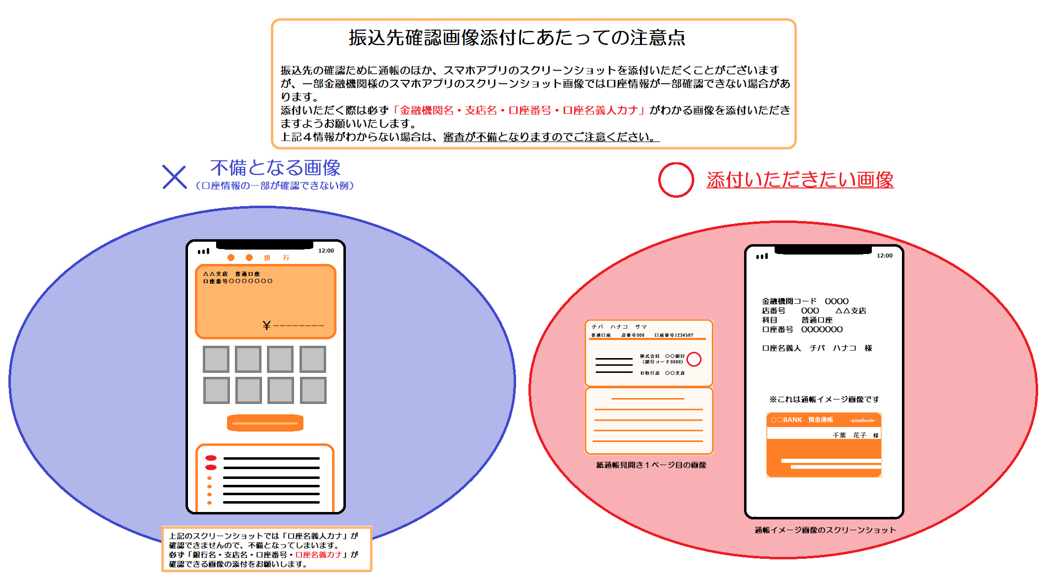 振込先確認画像添付にあたっての注意点