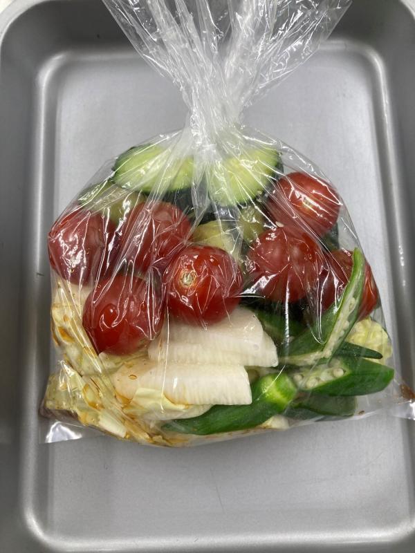【減塩と調理のポイント】旬の野菜を切ったら、ポリ袋に調味料と一緒に入れてもむだけです。親子で一緒に楽しみながら作ってみてください。すぐに食べても、しばらく漬けておいても、おいしくいただけます。