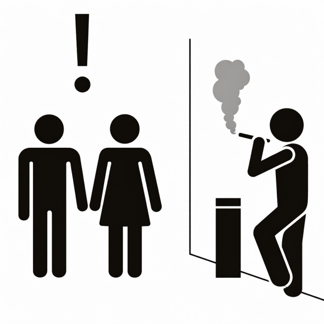 健康増進法では、喫煙禁止場所以外の場所で喫煙をする際にも喫煙者や喫煙場所の設置者に対し、望まない受動喫煙を防ぐための配慮が義務付けられています。