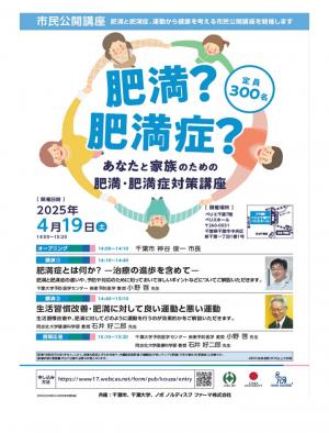 この度、千葉大学の先生をお招きし、「肥満と肥満症の違い」や「運動から健康を考える」ことをテーマに市民公開講座を開催しますので、ぜひご参加ください!!