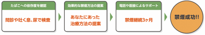 サポートは無料です。たばこの依存度を知るための呼気一酸化炭素濃度測定や尿中ニコチン代謝物濃度測定も実施しています。ぜひ、お気軽にご相談ください。