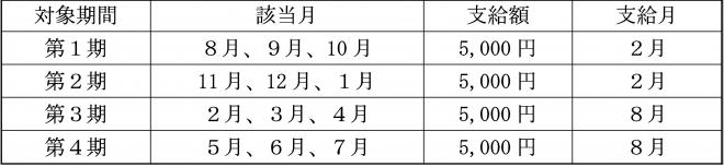 ○下記の該当月に受給資格があった場合に対象期間に対応する金額を支給月に振り込みます。 例:令和8年2月まで受給資格があった場合。