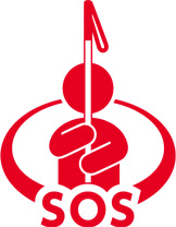 このマークは、「白杖SOSシグナル」運動の普及啓発シンボルマークです。 白杖を頭上50センチメートル程度に掲げて「SOS」のシグナルを示している視覚に障害のある人を見かけたら、進んで声をかけ、困っていることなどを聞き、サポートをしてください。 |