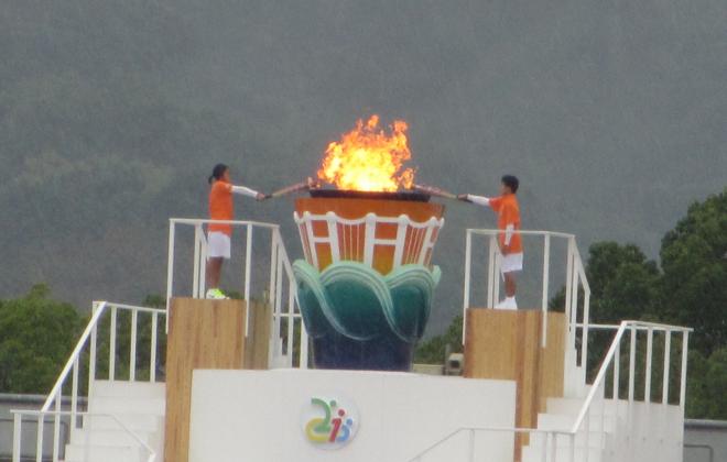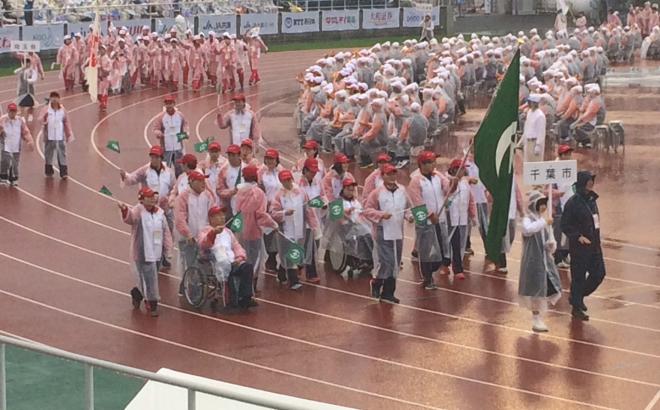荒天のため、残念ながら一部の競技種目が中止となりましたが、千葉市選手団は、個人競技の6競技19種目に出場し、どの選手も最後まであきらめず精一杯がんばりました。また、水泳50メートルバタフライに出場した窪田幸太選手が、30秒71のタイムで大会記録を更新しました。