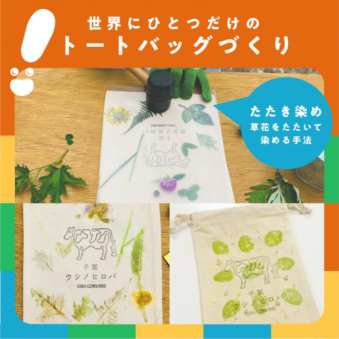 草花をたたいて染める「たたき染め」の手法を使って、植物の色や形をバッグに写して作るオリジナルトートバッグ作り。