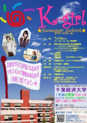K-girlイベント 「サマースクール」に行こう!が開催されます。お金のやりくりが気になる女子、マネジメントに興味のある女子は気軽にお越しください。たくさんのご来場ありがとうございました。