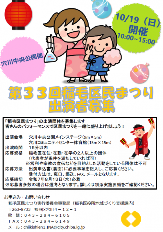 ※詳しくは、「稲毛区民まつり出演者公募実施要領」をご覧ください。