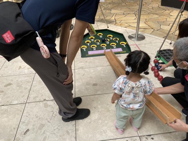 小さいお子様には特に大人気で、いろんな方法でボッチャを体験いただきました。