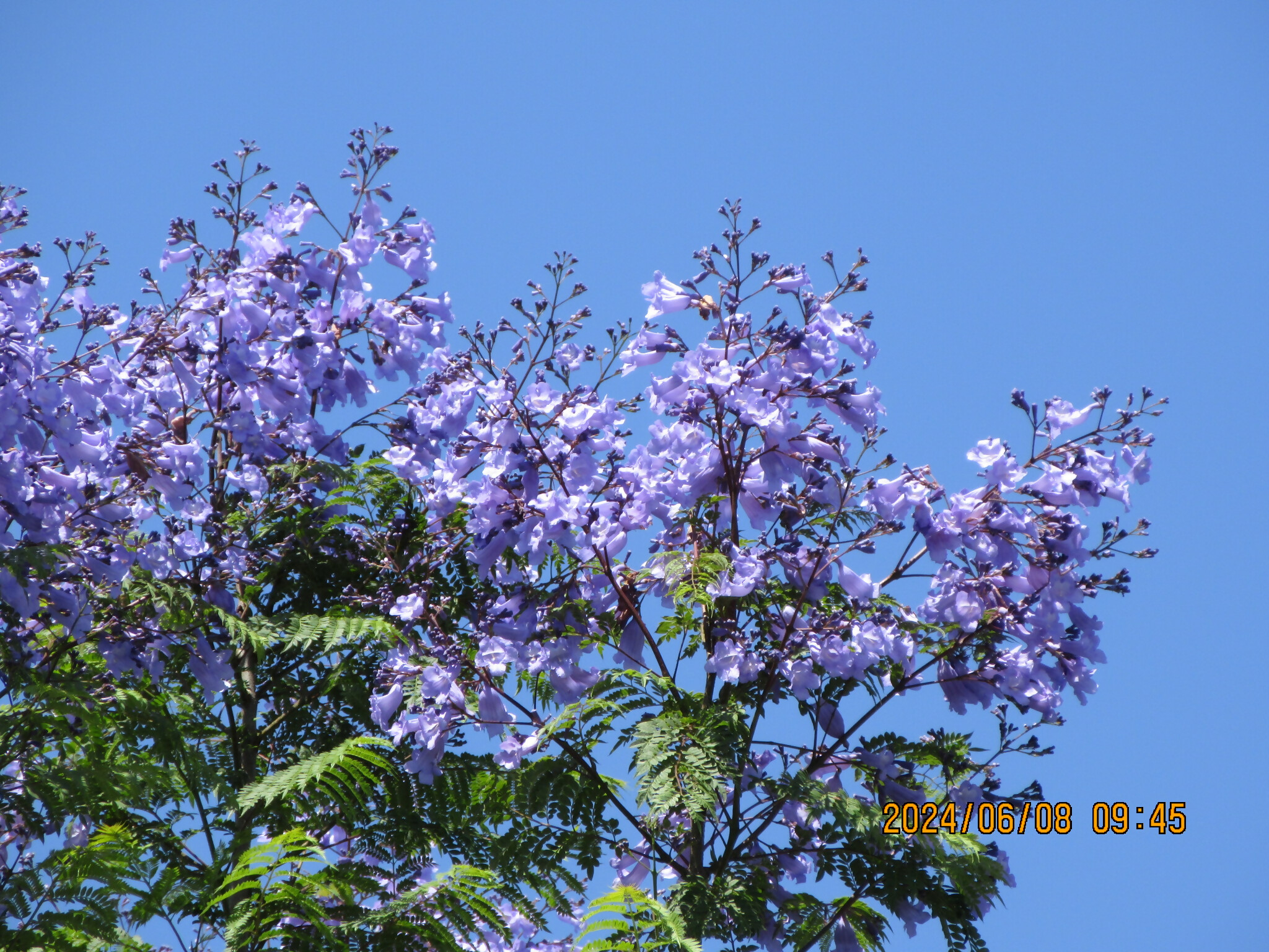 1.小林 英夫 2.稲毛区長沼町 3.令和6年6月11日 4.「ジャカランダ」約30数年ぶりに満開となりました。温暖化の賜物か! 5.ジャカランダ |