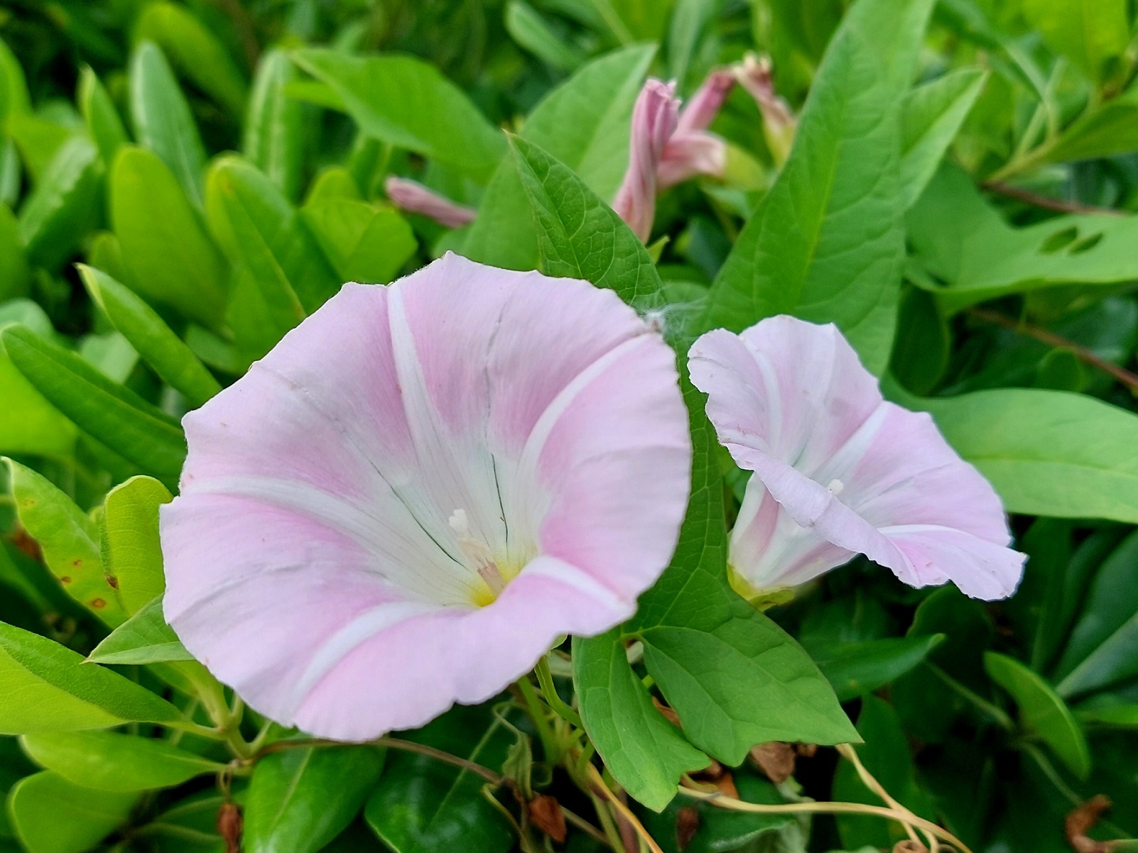 1.上穂木 勉雄 2.稲毛区役所フェンス外側 3.令和6年5月22日 4.「日差しを受けて」綺麗で可憐な花ですが、朝顔と違い、昼顔は見向きもされません。 5.ヒルガオ(昼顔) |