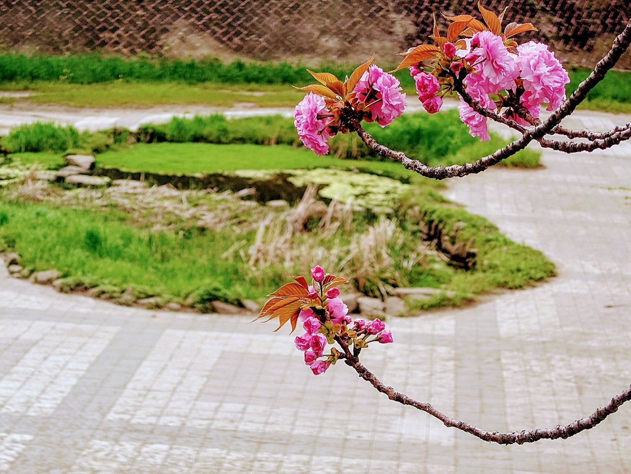 1.江澤 孜 2.稲毛区六方町 3.令和6年4月16日 4.「ピンクとみどりコラボ」満開の八重桜が後方の緑の芝と共演より艶やか 5.八重桜 |